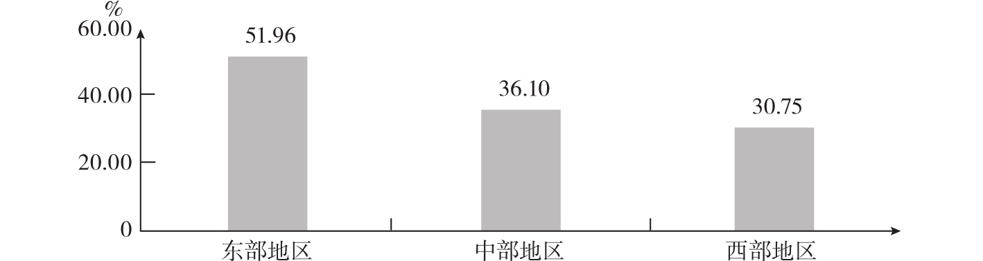 整体而言,西部地区生态文明建设水平落后于东部地区,2003—2017年,东部地区生态文明建设水平为51.96%,中部地区生态文明建设水平为36.10%,西部地区生态文明建设水平为30.75%,生态文明建设水平整体呈现东高西低态势,如图3.8所示。
