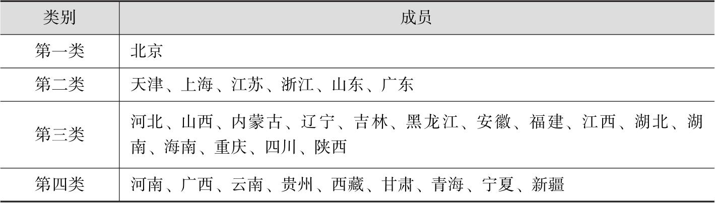 本书对通过显著性检验的分类结果进行整理,可以将各地区分为4类区域,第一类为生态文明高建设水平区域,仅含北京1个地区;第二类为生态文明建设水平较高区域,包含天津、上海、江苏、浙江、山东、广东6个地区;第三类为生态文明建设水平较低区域,包含河北、山西、内蒙古等15个地区;第四类为区域生态文明建设水平极低区域,包含河南、广西、云南等9个地区。2003—2017年我国各地区生态文明建设水平分类情况如表3.5所示。