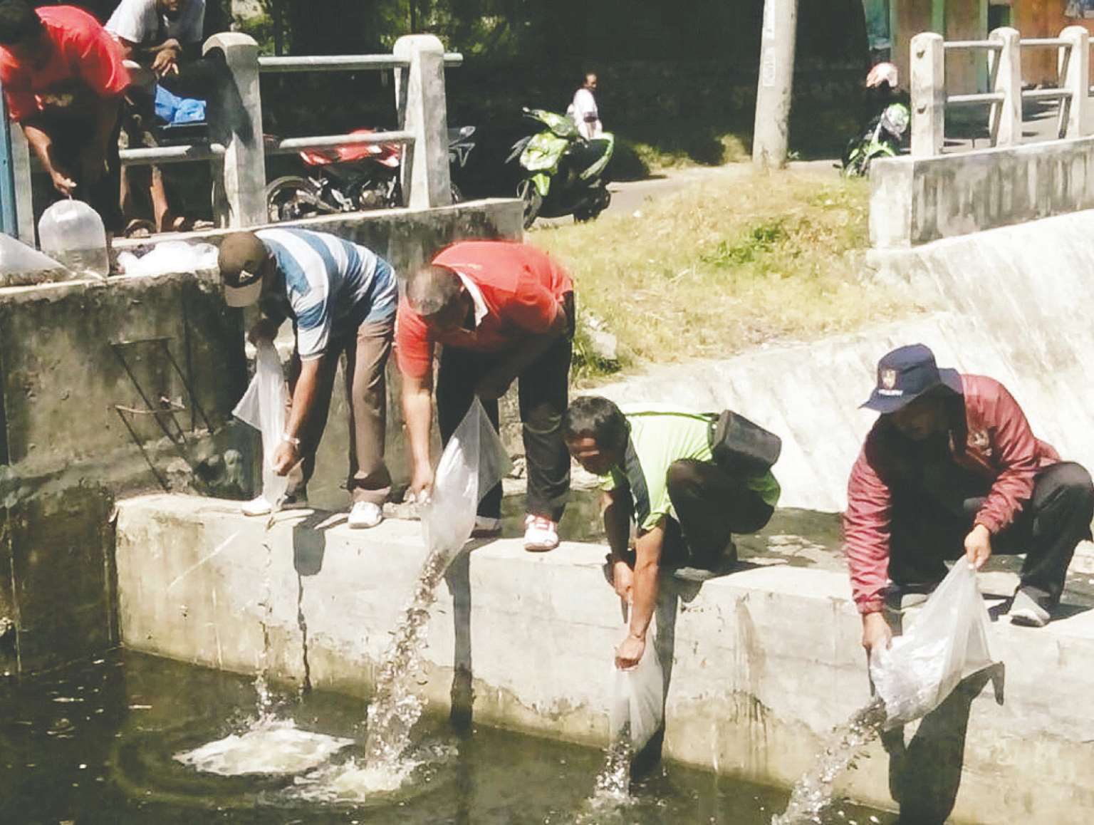 如今的梭罗卡利安雅尔与几十年前佐科维和他的家人住在河岸上时相比已经发生了巨大变化。从照片中可以看到居民将鱼籽撒入河中。居民通过捕鱼来努力改善他们的营养。摄影:WWW.SURAKARTA.GO.ID.