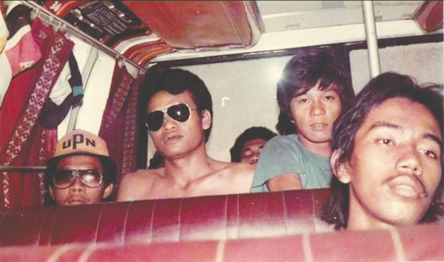 佐科·维多多(最右)和他的朋友们乘坐巴士前往登山地点。佐科维的年轻性格源于勇于克服挑战、建立合作、培养团队内部的高度团结和领导力。摄影:伊斯特瓦工作室。