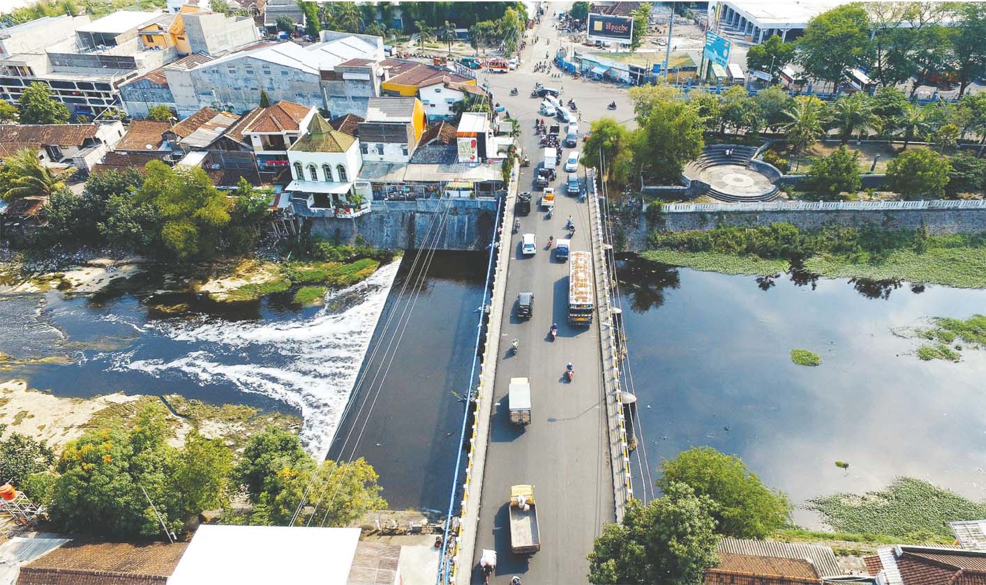 就像河石每日承载水流的磨砺,河流也赋予了佐科维源源不断的工作热情,使他得以克服各种困难。图中为梭罗河河流管理厅(BBWS),自 1966 年洪水侵袭梭罗市大部地区以来,这里在不断发生变化。梭罗河河流管理厅致力于构建区域中心协同效应,旨在治理洪水并推动区域发展。摄影:印尼公共工程与住房部。