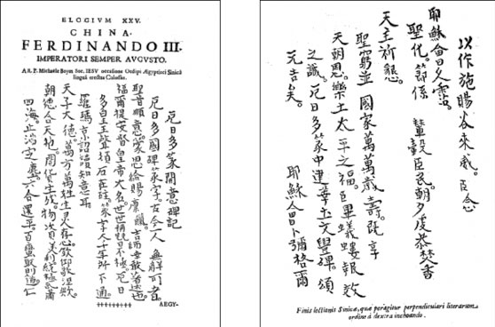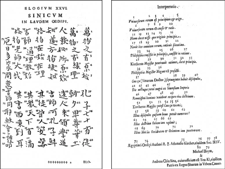 这两份文献,歌颂孔子的诗歌100字,歌颂费迪南多三世皇帝的短文212字,一共312字。这是欧洲出版史上首次公布如此多的汉字。因此,基歇尔的《埃及的俄狄浦斯》一书在汉字西传历史上是一个重要的转折点。