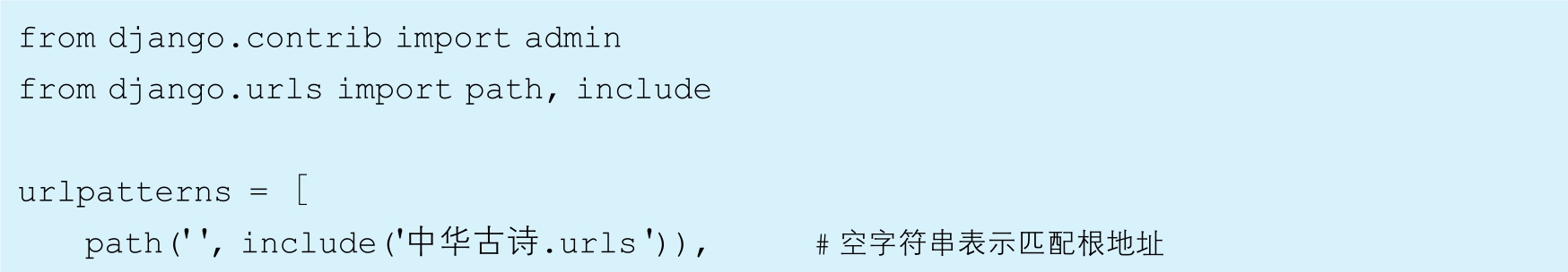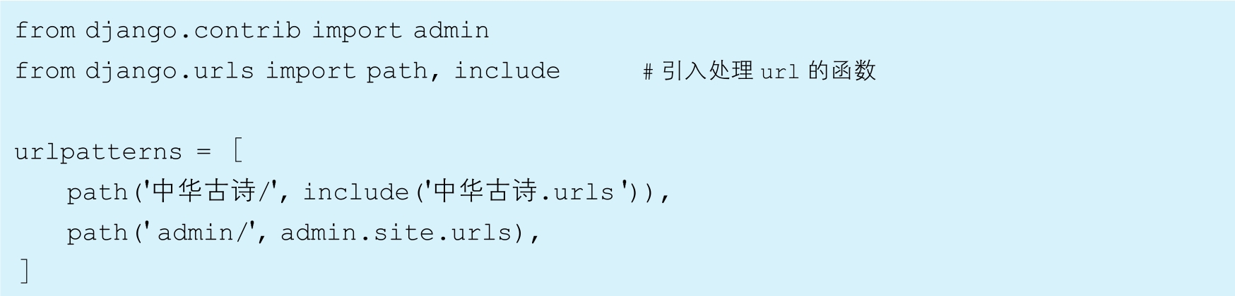 最终,Web应用目录(中华古诗)下“urls.py”文件的代码如下。