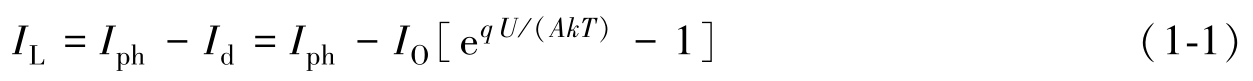 式中 I O ——反向饱和电流,是在黑暗中通过PN结的少数载流子的空穴电流和自由电子电流的代数和;