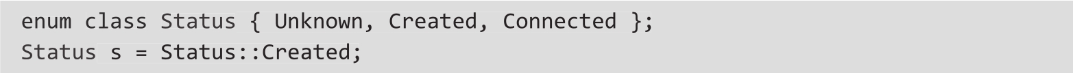enum class和enum struct声明是等价的,在本书中,我们将使用enum class。