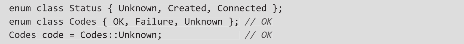a.如果同一命名空间中的两个枚举具有相同名称的枚举器,则可能导致命名冲突。