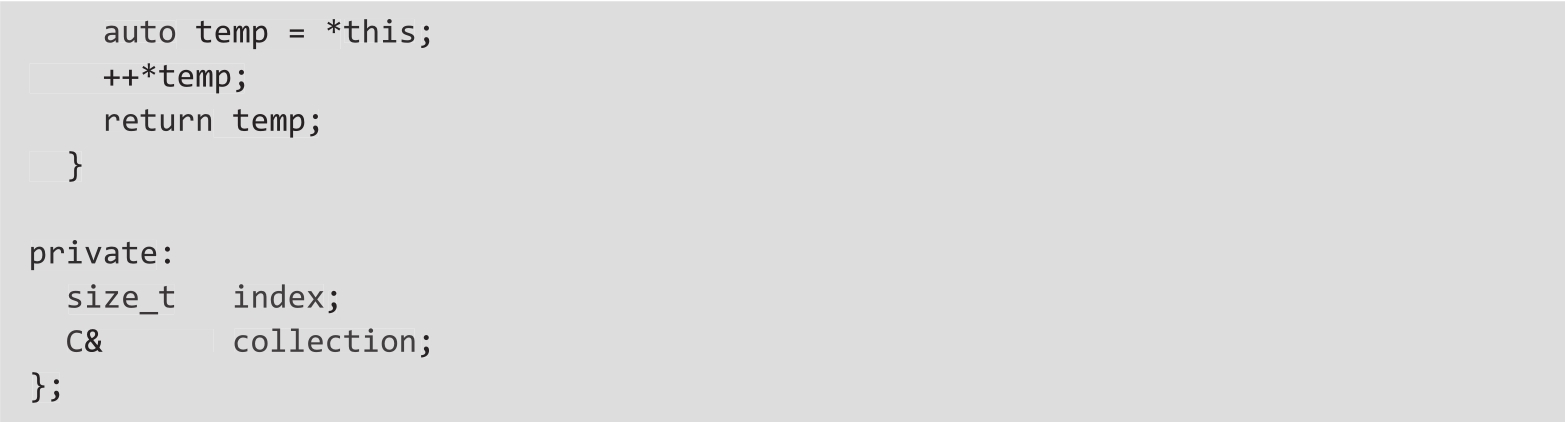 ❍ 以下迭代器类的最简洁实现: