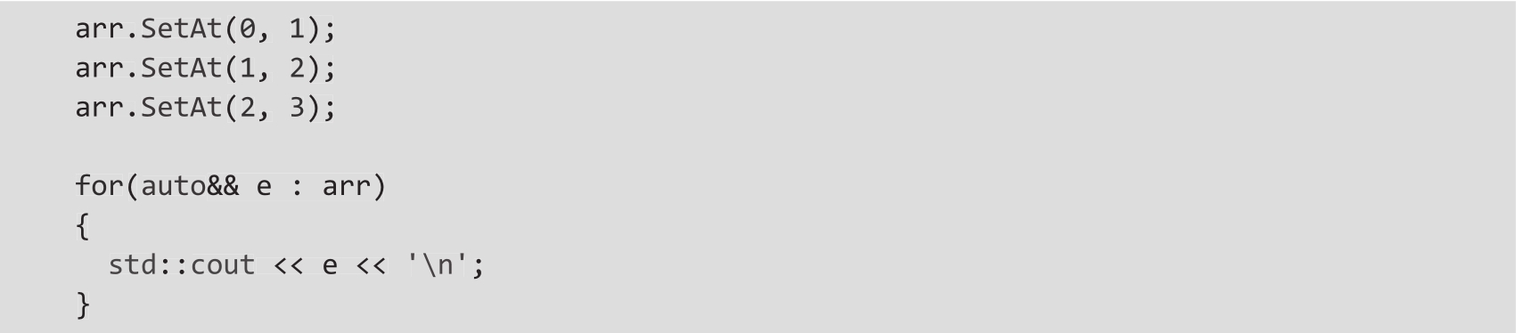 为了演示如何对用户自定义序列使用基于range的for循环,我们将使用如下简单数组的实现: