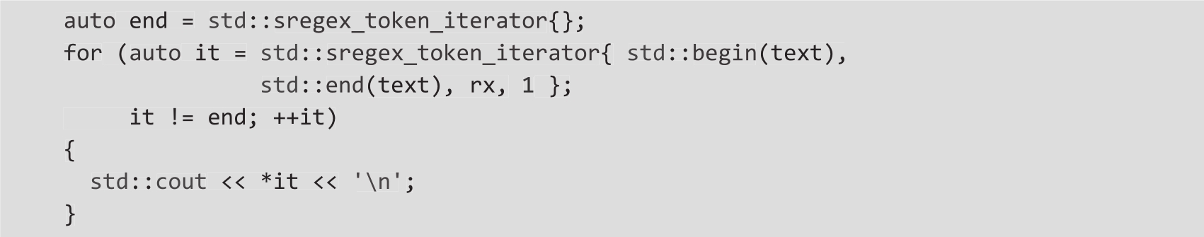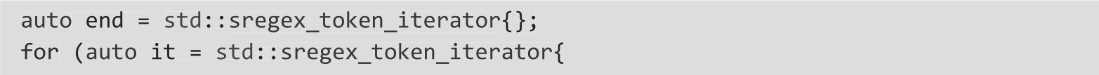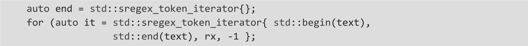 ❍ 要遍历匹配的所有子表达式,可以使用迭代器std::regex_token_iterator(示例3):