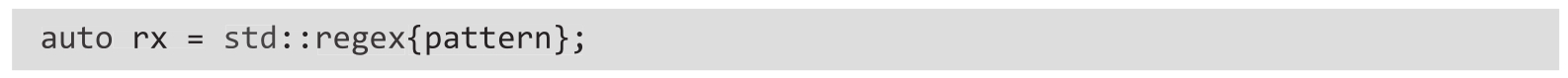 ❍ 创建std::regex或std::wregex对象(具体取决于所使用的字符集)来封装正则表达式: