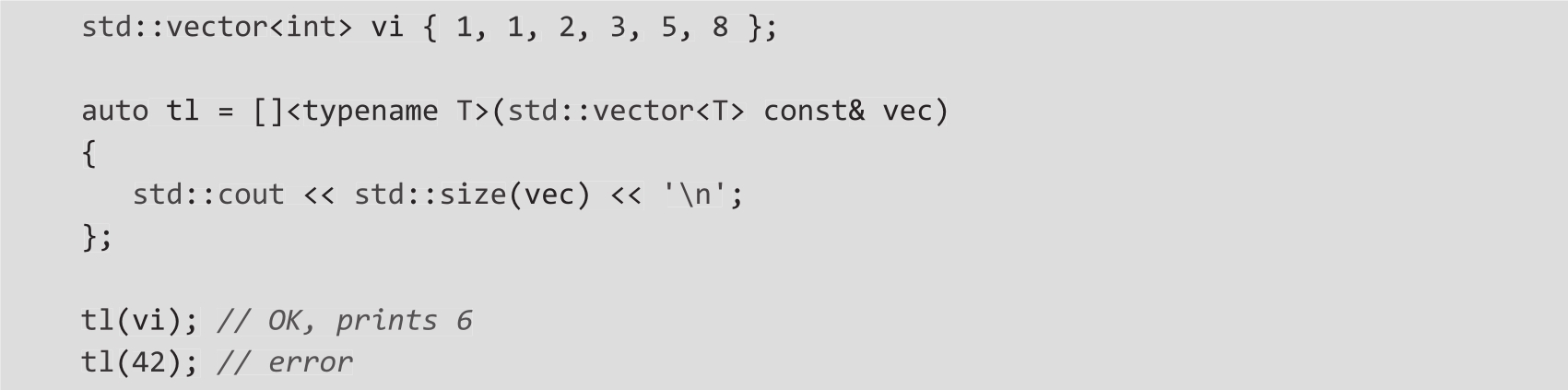以下示例展示了一个只能使用std::vector来调用的模板lambda: