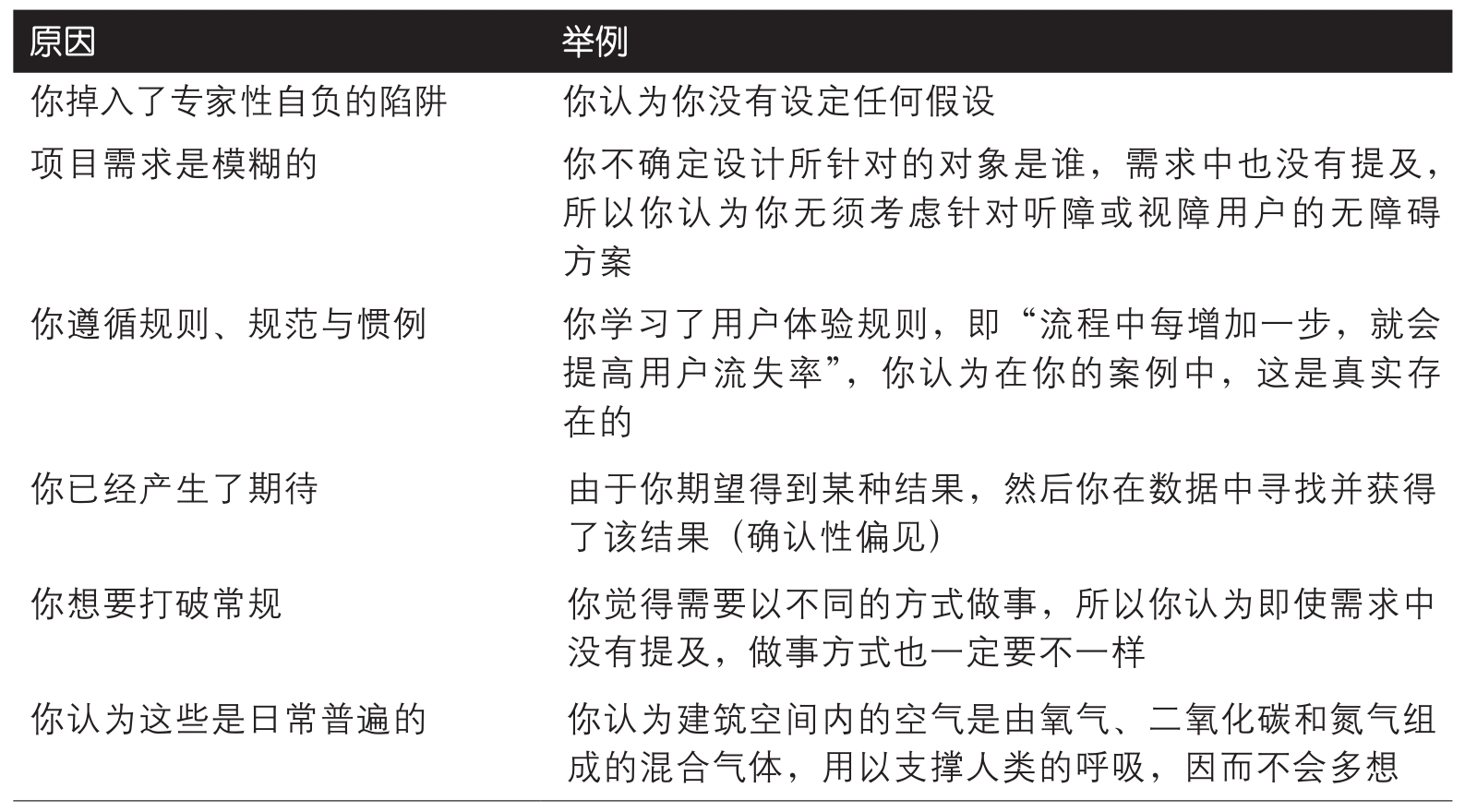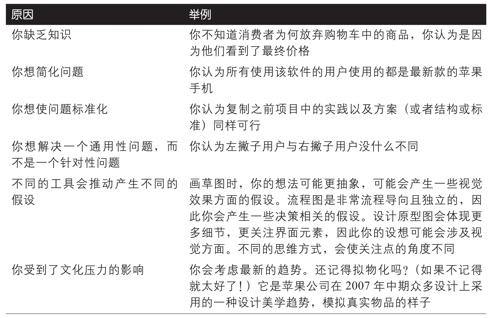 表2-1:假设背后的常见原因(续)
