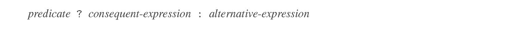 条件表达式以 predicate 开头(下面有时称为“谓词部分”“谓词表达式”,或直接说“谓词”),这是一个值为 的表达式。 是JavaScript里的两个 布尔 值,对基本布尔表达式 true false 求值将直接得到布尔值真和假。在谓词之后是一个问号,然后是 consequent-expression (下面称为“后继部分”或“后继表达式”)、一个冒号和 alternative-expression (下面称为“替代部分”或“替代表达式”)。