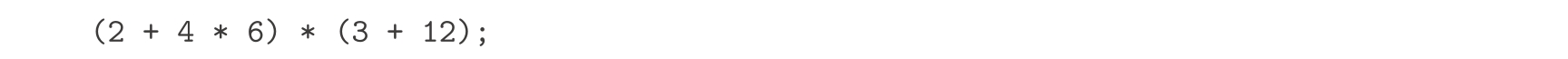 如常,我们可以用括号在运算符组合式里做分组,以避免歧义。如果忽略括号,JavaScript也遵循常规的规则:乘法和除法运算符的组合力比加减法运算符更强,因此,
