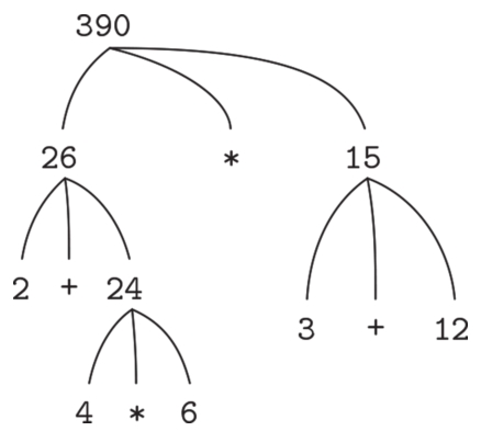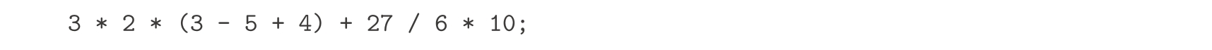 对这样复杂的表达式,解释器马上就能求值得到57。我们帮助自己的方法可能是重写上面的表达式,例如写成下面的形式: