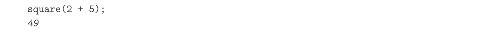 声明了square之后,我们就可以在 函数应用 表达式里使用它。我们可以给这种表达式加上分号,将其转变为一个语句:
