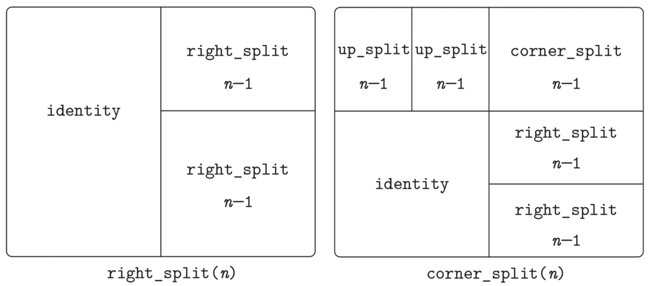 练习2.44 请声明corner_split里使用的函数up_split,它与right_split类似,但是其中交换了below和beside的角色。