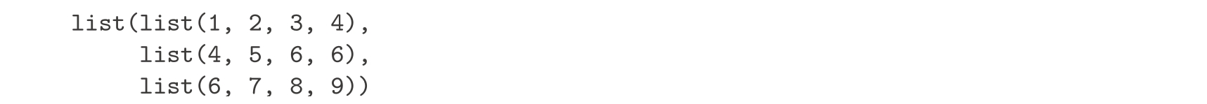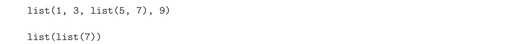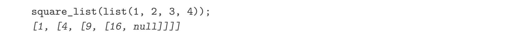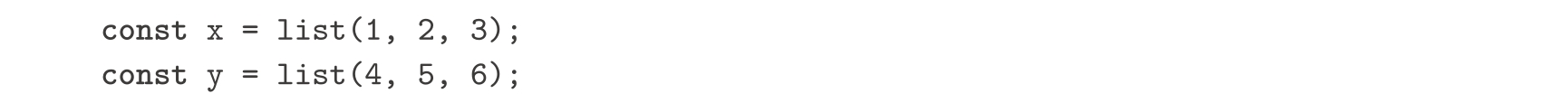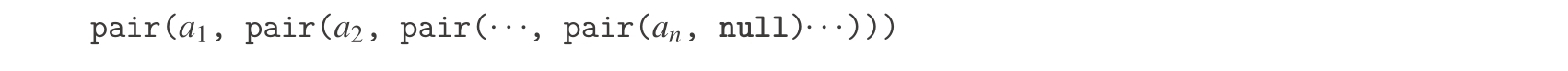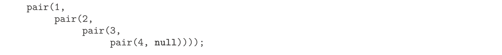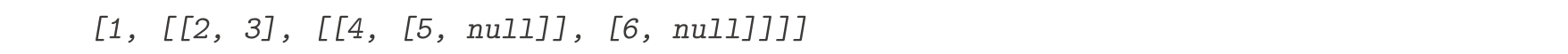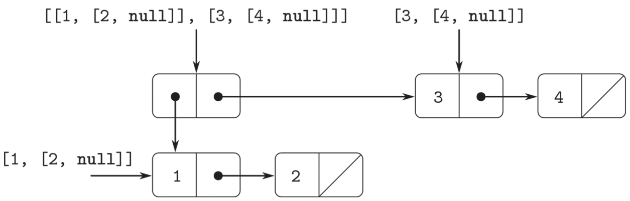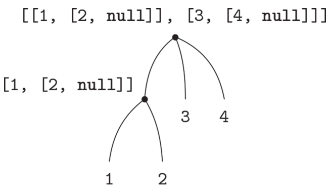 用表作为序列的表示方式,可以自然推广到元素本身也是序列的序列。例如,我们可以认为对象[[1, [2, null ]], [3, [4, null ]]是通过以下方式构造的: