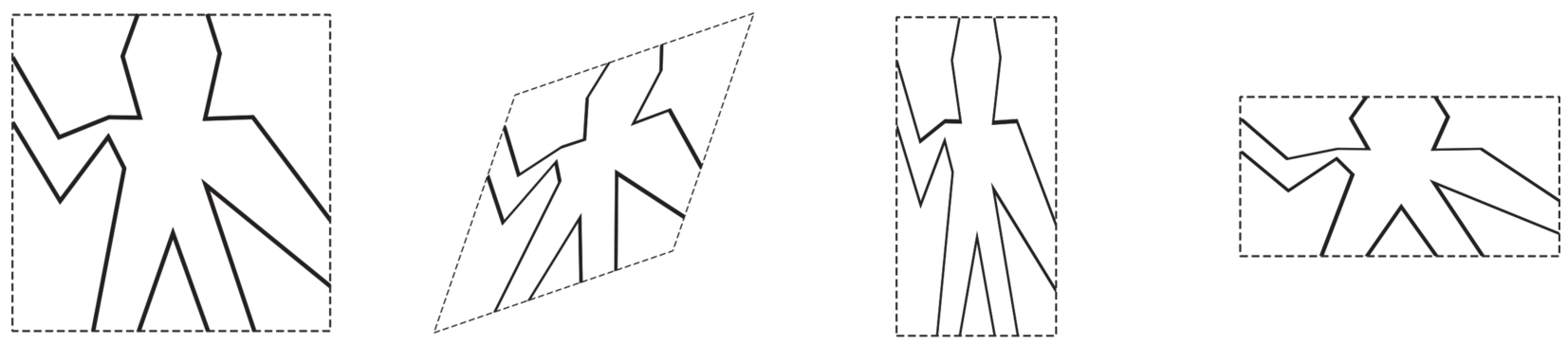 我们将用单位正方形(0≤ x , y ≤1)里的坐标描述图像的位置。对于每个框架,我们要为它关联一个 框架坐标映射 ,利用这个映射实现相关图像的位移和伸缩,使之适配于这个框架。这个映射的功能就是把单位正方形变换到相应的框架,也就是把向量 v =( x , y )映射到下面的向量和: