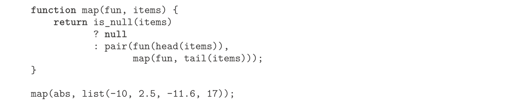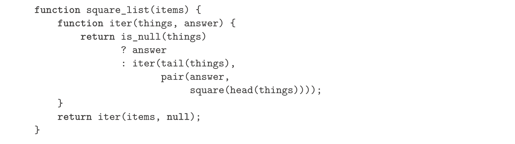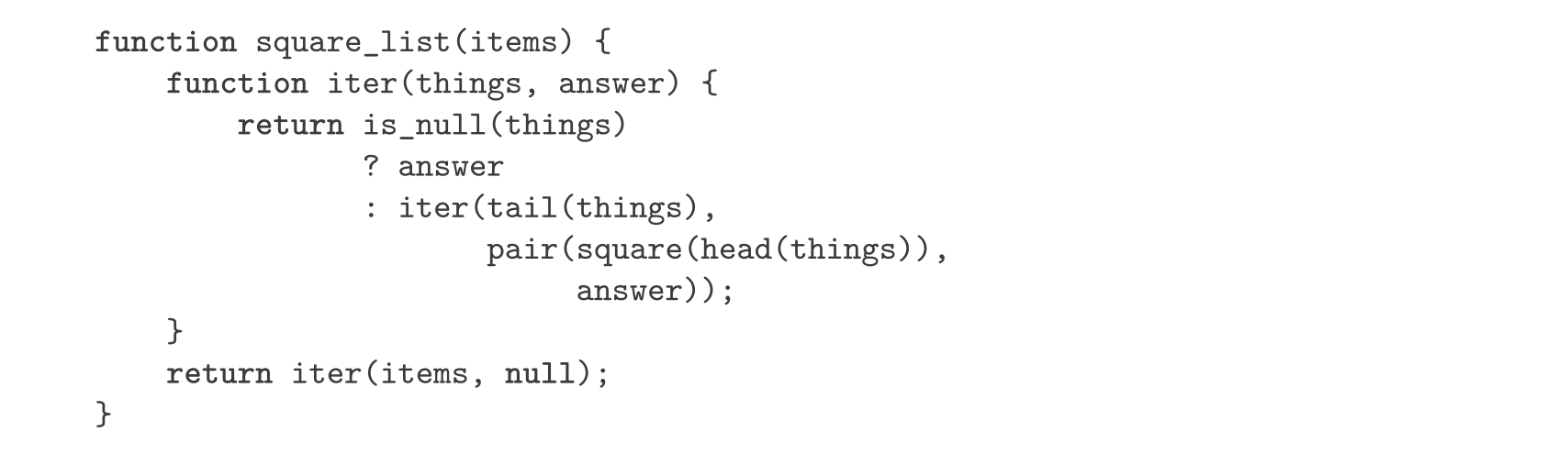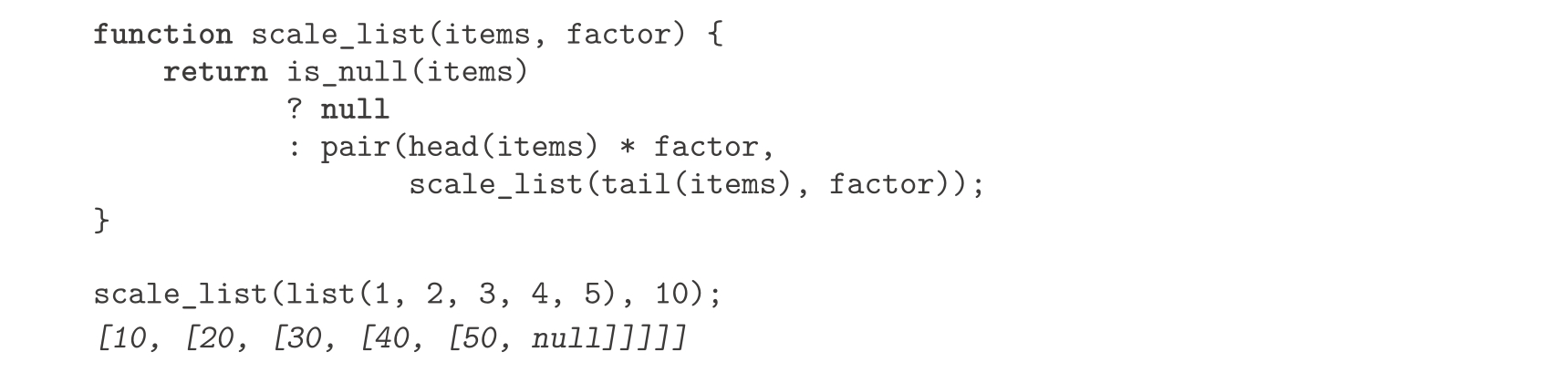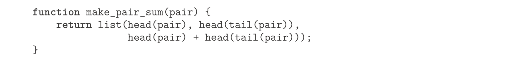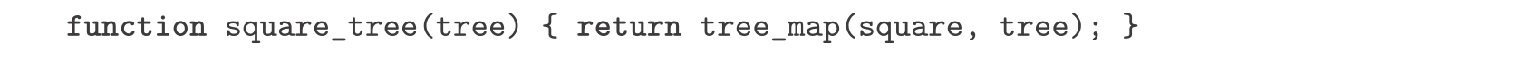 为了支持人们描述对树结构的递归处理,我们的JavaScript环境提供了一个基本谓词is_pair,它检查其参数是否为序对。下面是完整函数的声明