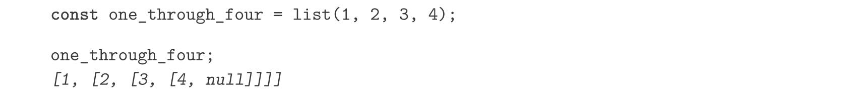 。为了更方便地构造这种表,我们的JavaScript环境提供了一个基本操作list