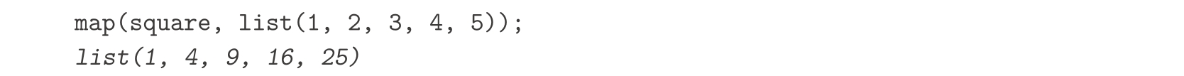 我们可以把这一极具普适性的想法抽象出来,提取其中的公共模式,将其表述为一个高阶函数,就像1.3节里那样。这个高阶函数称为map,它以一个函数和一个表为参数,返回把这个函数应用于表中各个元素得到的结果构成的表。