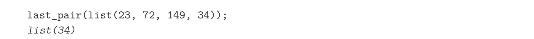 练习2.17 请声明一个函数last_pair,对给定的(非空)表,它返回只包含表中最后一个元素的表:
