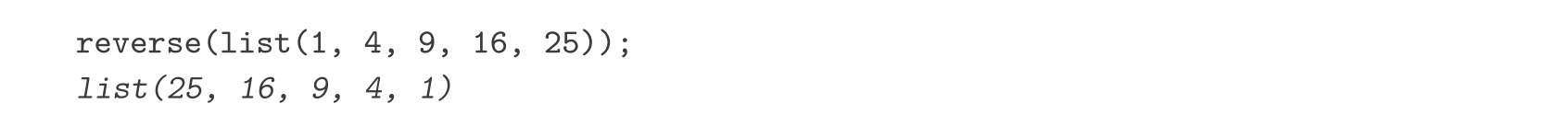 练习2.18 请声明一个函数reverse,它以一个表为参数,返回的表包含的元素与参数表一样,但它们排列的顺序与参数表相反: