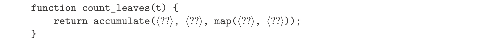 count_leaves的递归方案与此类似,对空表的值也一样: