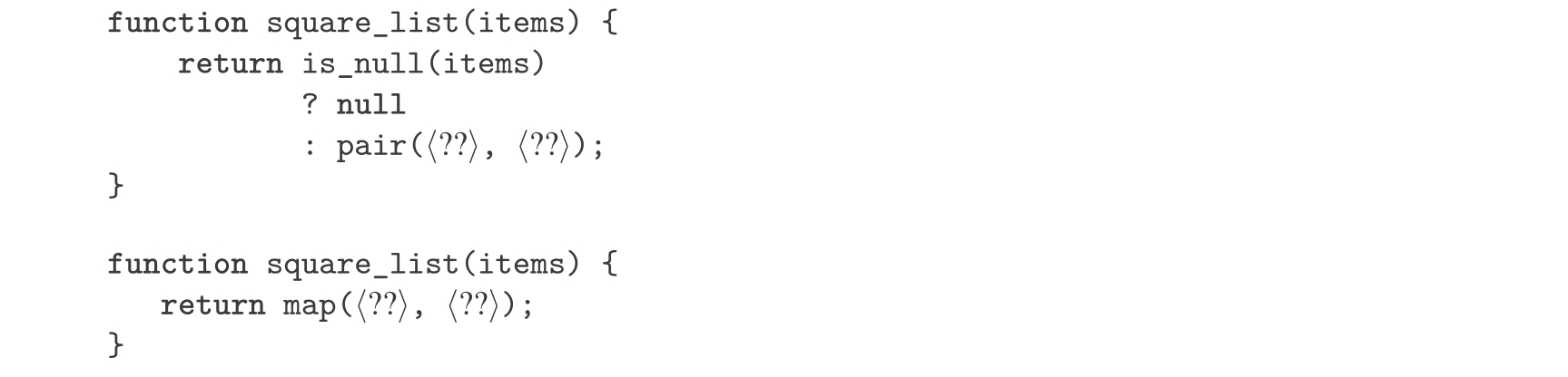 下面是square_list的两个不同声明,请填充其中空缺的表达式以完成它们: