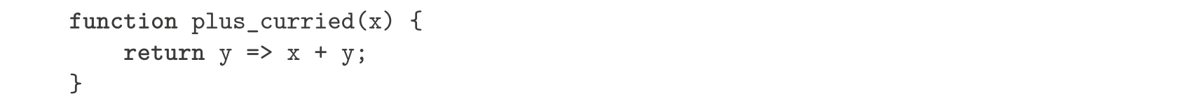 练习2.20 由于存在高阶函数,允许函数有多个参数的功能已不再是严格必需的,只允许一个参数就足够了。如果我们有一个函数(例如plus)自然情况下它应该有两个参数。我们可以写出该函数的一个变体,一次只送给它一个参数。该变体对第一个参数的应用返回一个函数,该函数随后可以应用于第二个参数。对多个参数就这样做下去。这种技术称为curry 化 ,该名字出自美国数学与逻辑学家Haskell Brooks Curry,在一些程序设计语言里被广泛使用,如Haskell和OCalm。下面是在JavaScript里plus的curry化版本: