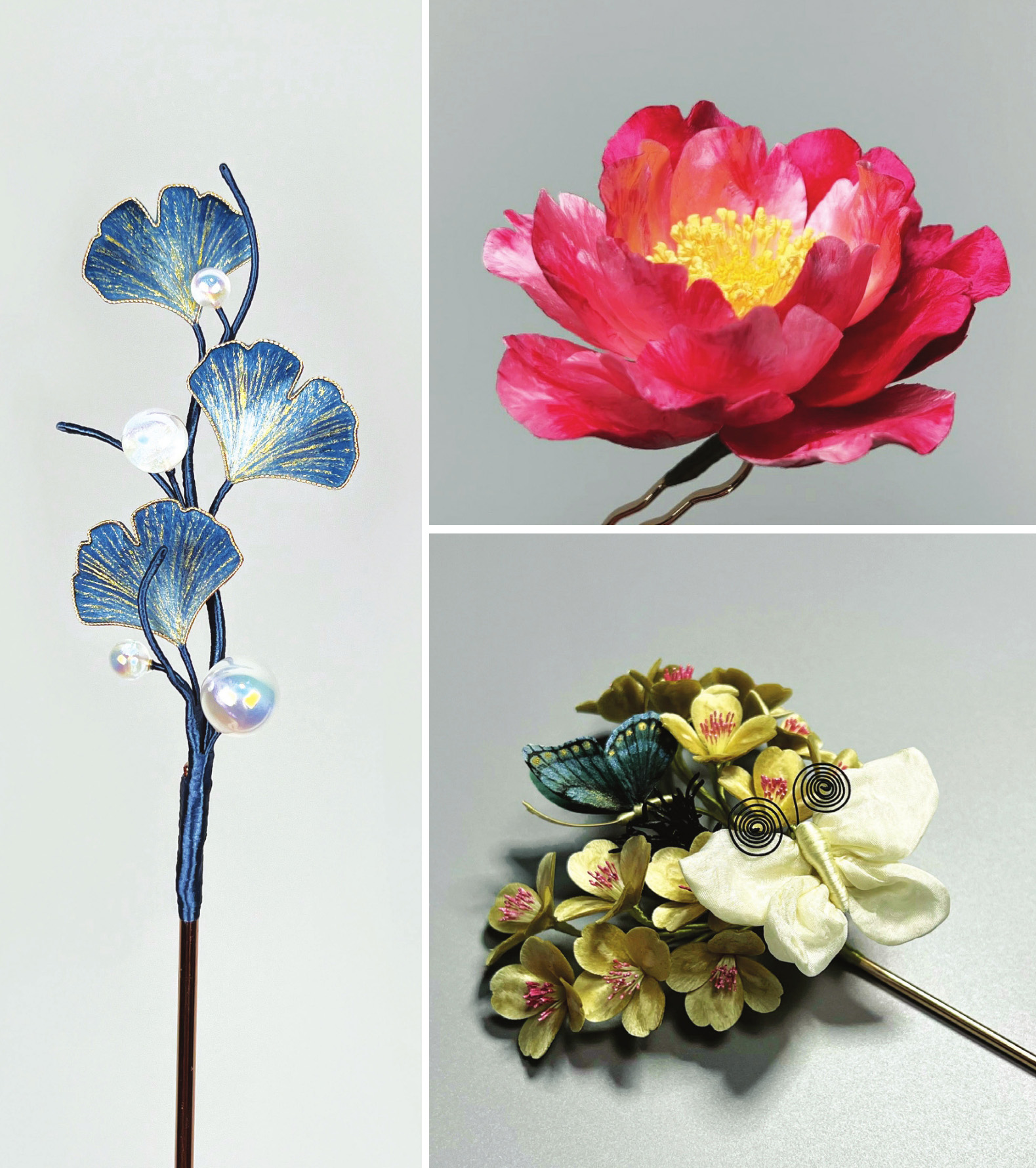 另一方面,绒花制作技艺也与其他工艺进行了结合。比如,将绒花制作技艺与掐丝工艺结合,制作出华美的掐丝绒花饰品;将绒花制作技艺与仿点翠工艺结合,创造出绚丽多彩的仿点翠绒花饰品。这些创新不仅丰富了绒花的表现形式,也为绒花艺术的发展注入了新的生命力。