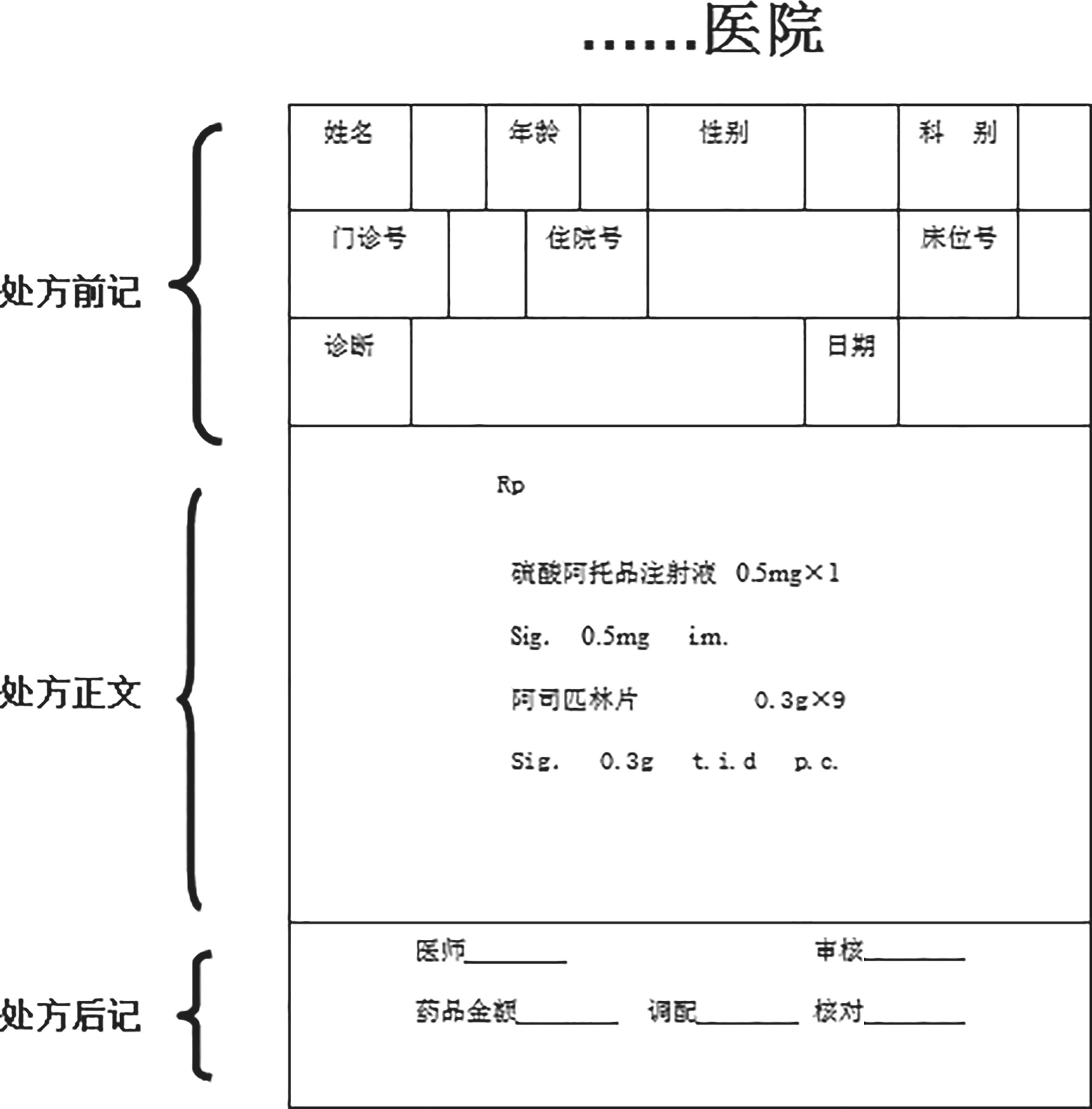 处方由处方前记、处方正文和处方后记三部分组成(图1-3-2-1)。