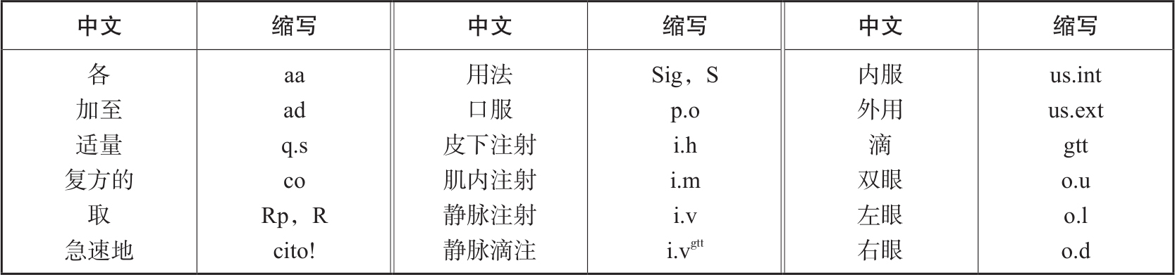以Rp或R(拉丁文Recipe“请取”的缩写)标示,分列药品名称、剂型、规格、数量、用法用量。药名必须使用通用名。