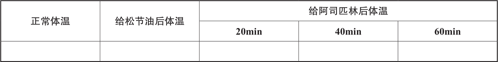松节油作为致热源可导致动物发热,阿司匹林具有解热作用,可使发热动物的体温恢复正常。