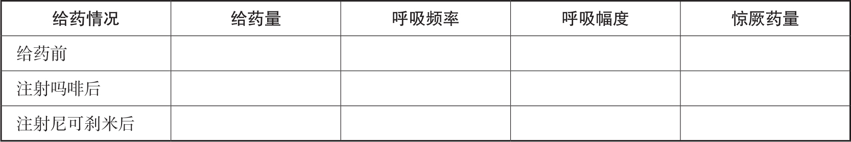 2.观察尼可刹米对吗啡引起的呼吸抑制的解救作用,并联系其临床用途。
