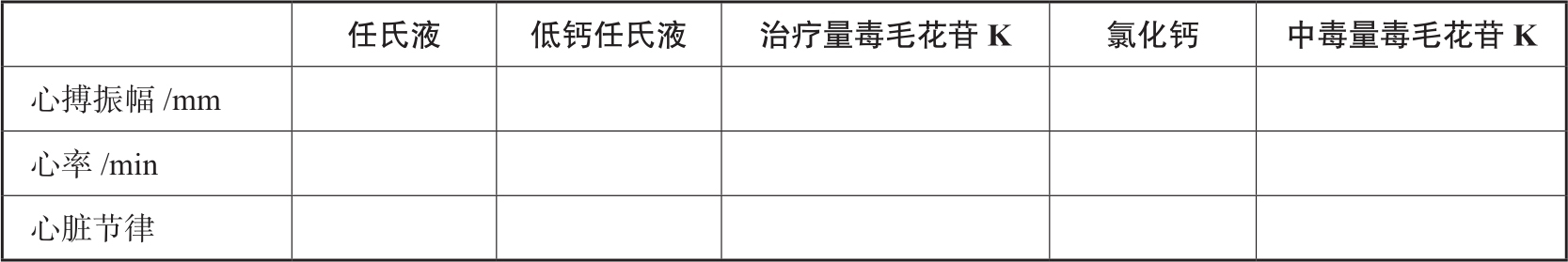 (2)当心肌收缩显著减弱时,向套管内滴加0.025%毒毛花苷K0.1~0.2mL,并观察其正性肌力作用。
