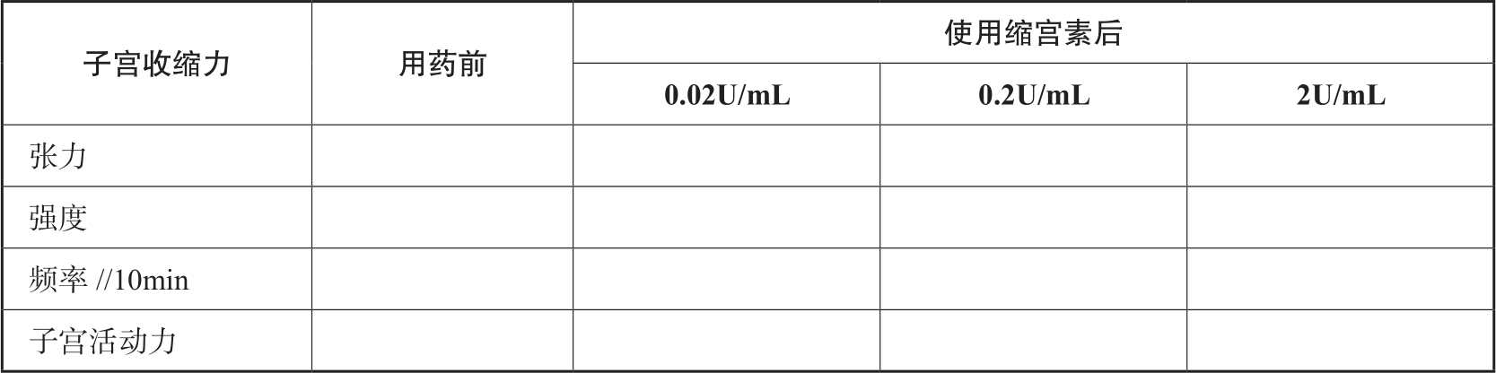 表1-7-7-1 缩宫素对离体子宫的兴奋作用实验结果