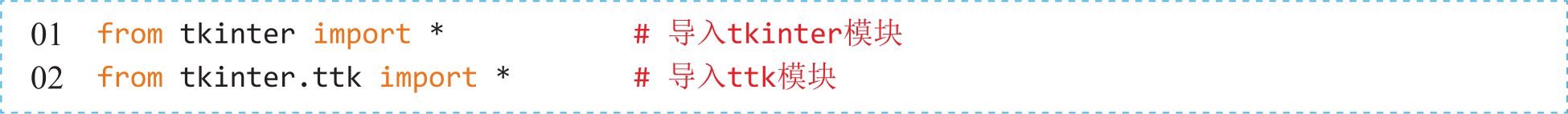 添加ttk模块中的组件之前同样需要导入ttk模块,具体代码如下: