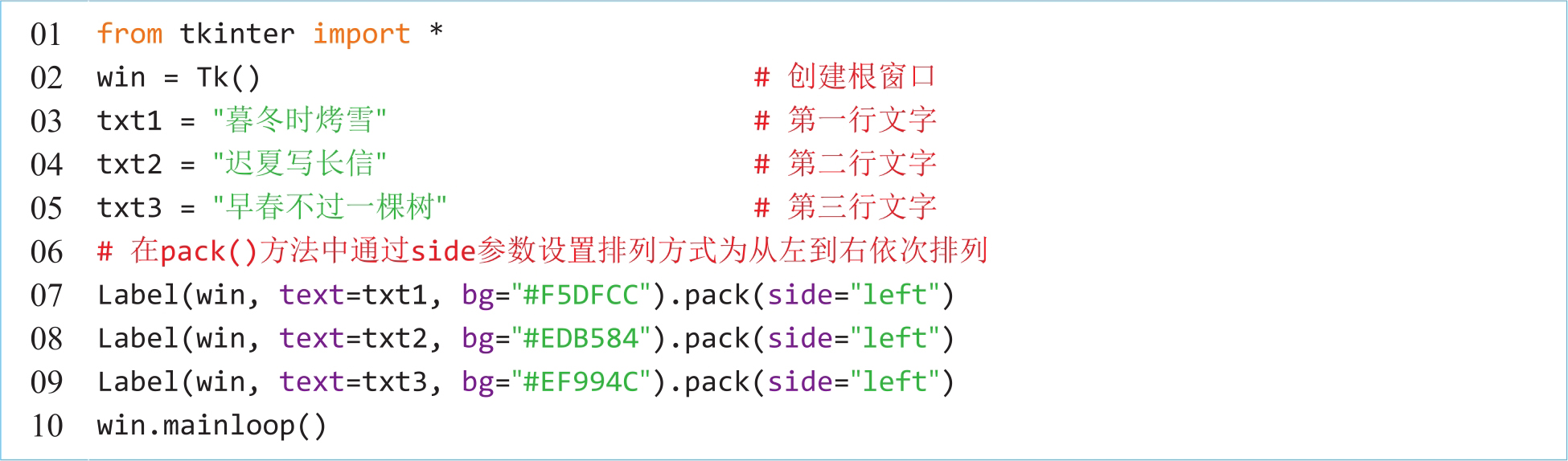 设置窗口中的三行文字从左到右依次排列。具体代码如下: