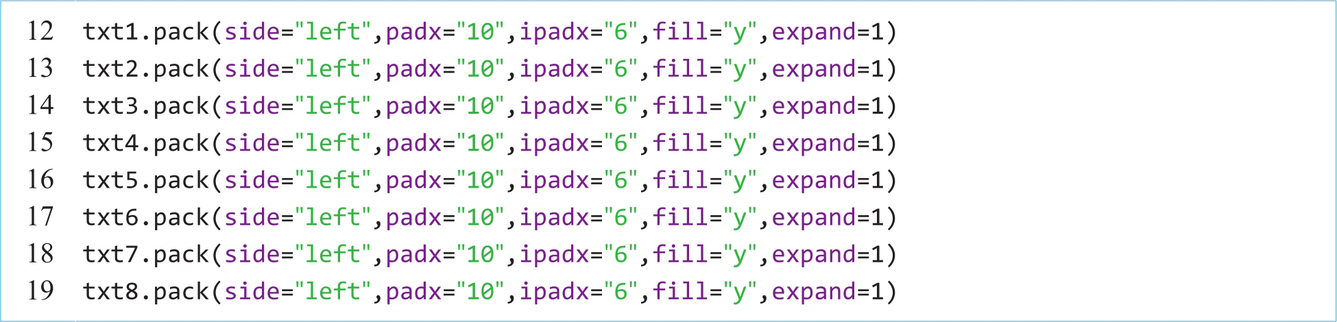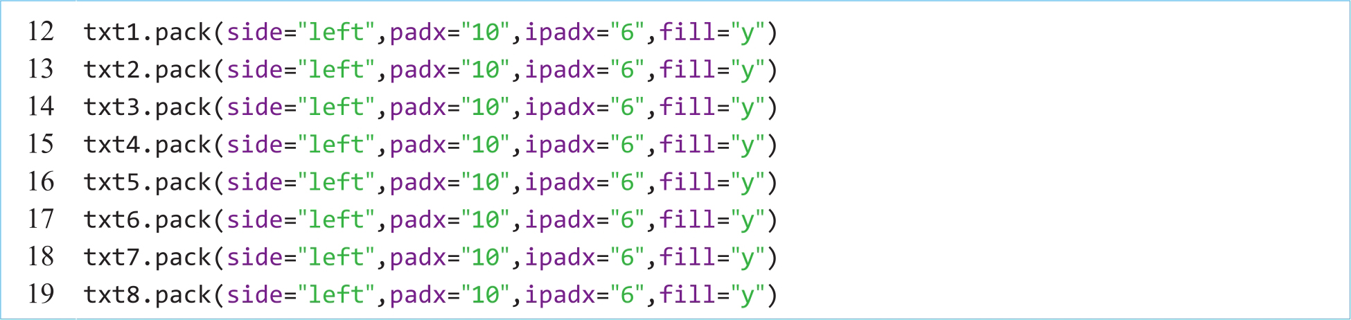 ☑ ipadx和ipady:设置组件内文字距离组件边界的距离,单位为像素。