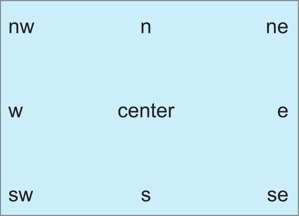 在上面的代码中,anchor设置组件在窗口的下方,side参数设置组件从右到左排列,所以最终组件的位置在右下角。