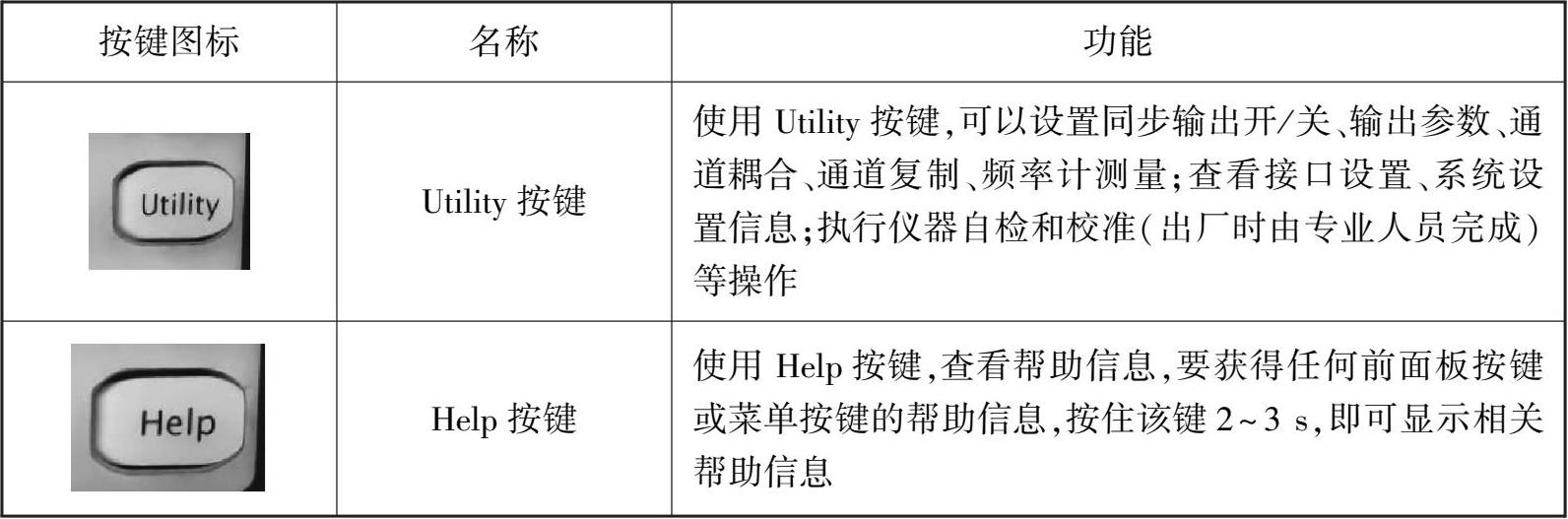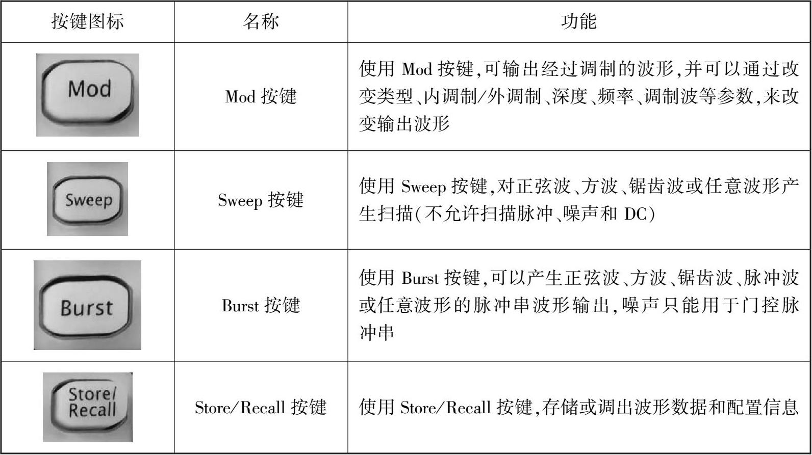 表 3-17 DG1022U型函数信号发生器模式/功能键及功能