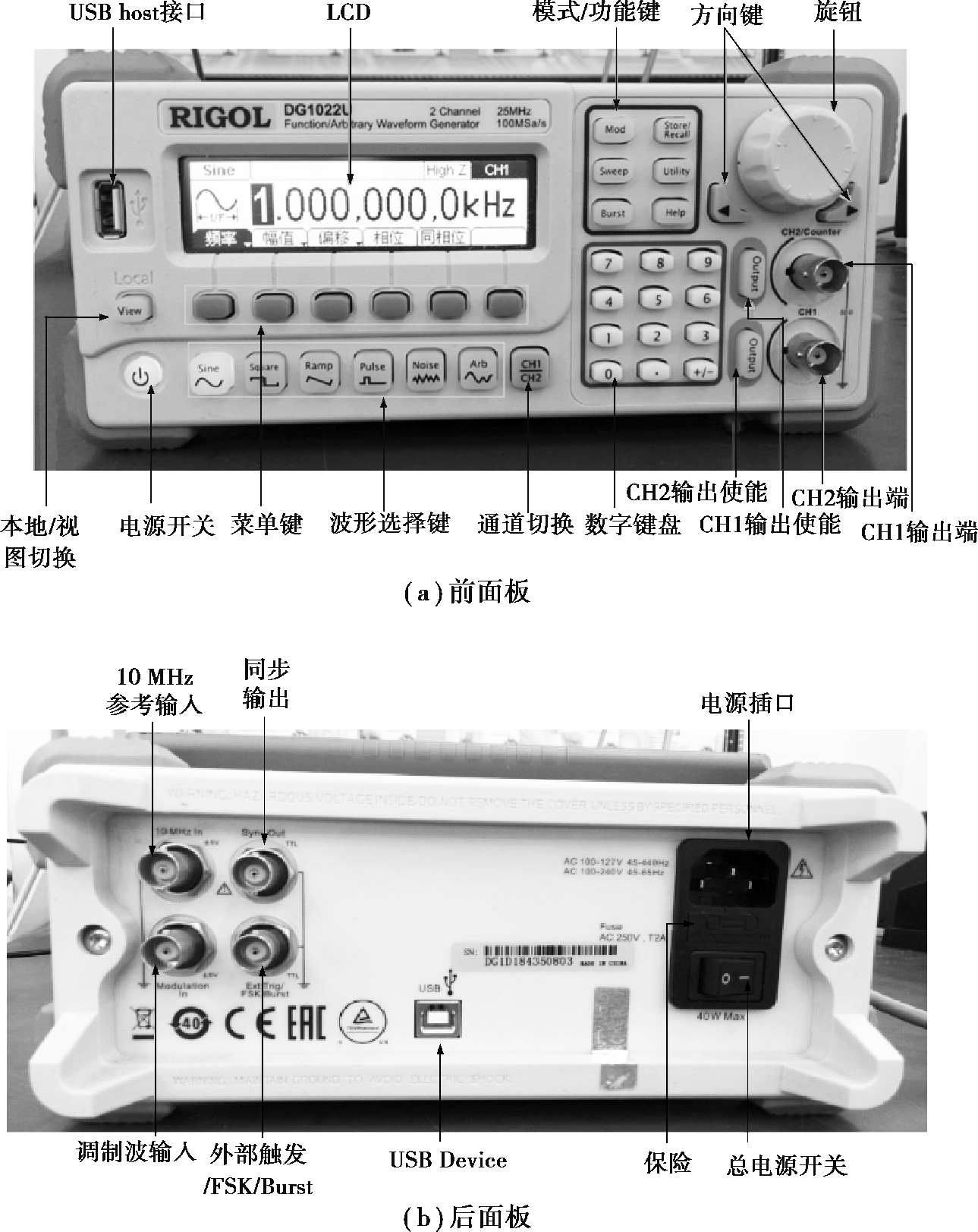 预热:DG1022U型函数信号发生器开机后,预热 15 s以上,以便能输出频率稳定的波形。