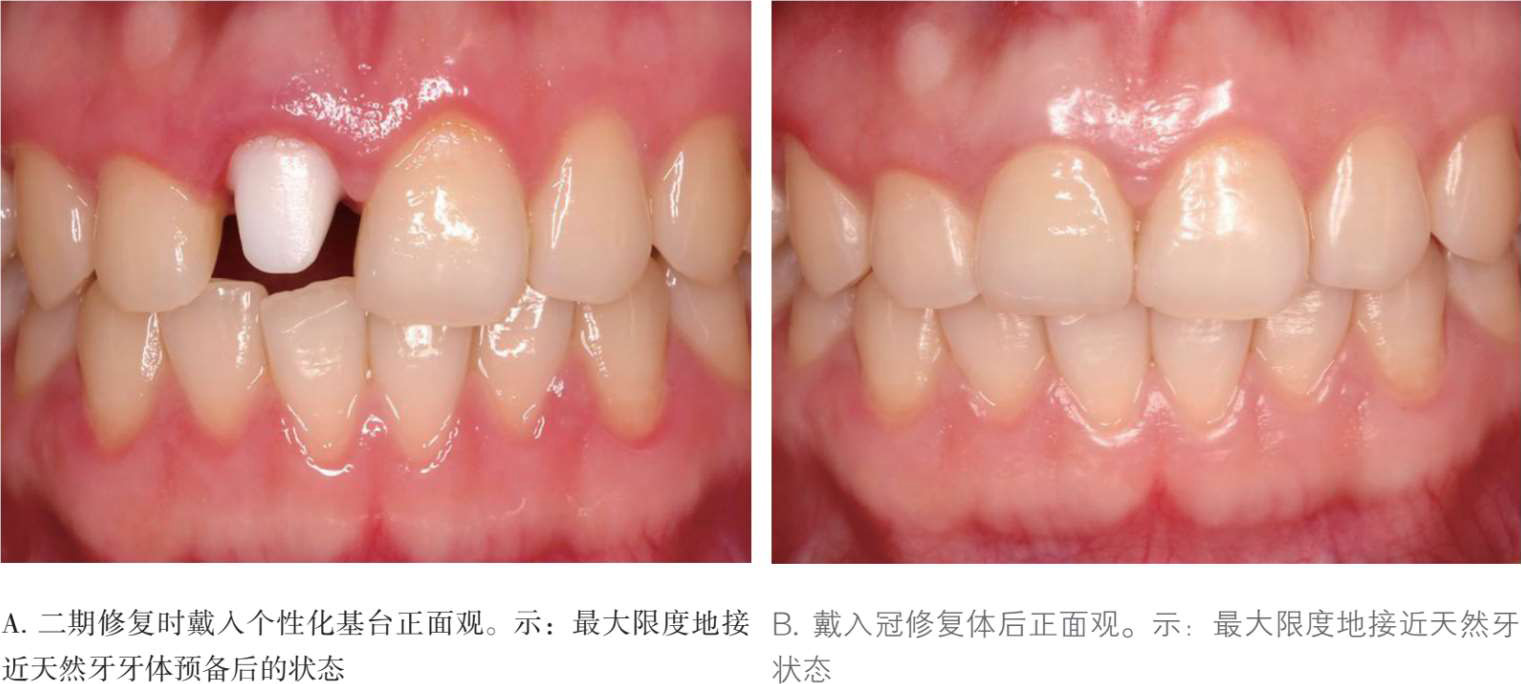 覆盖。当种植修复的结果满足以上全部要素条件时,即意味着医生实现了“以修复为导向”的种植治疗效果,使最终修复体接近健康天然牙状态(图1-1-2)。