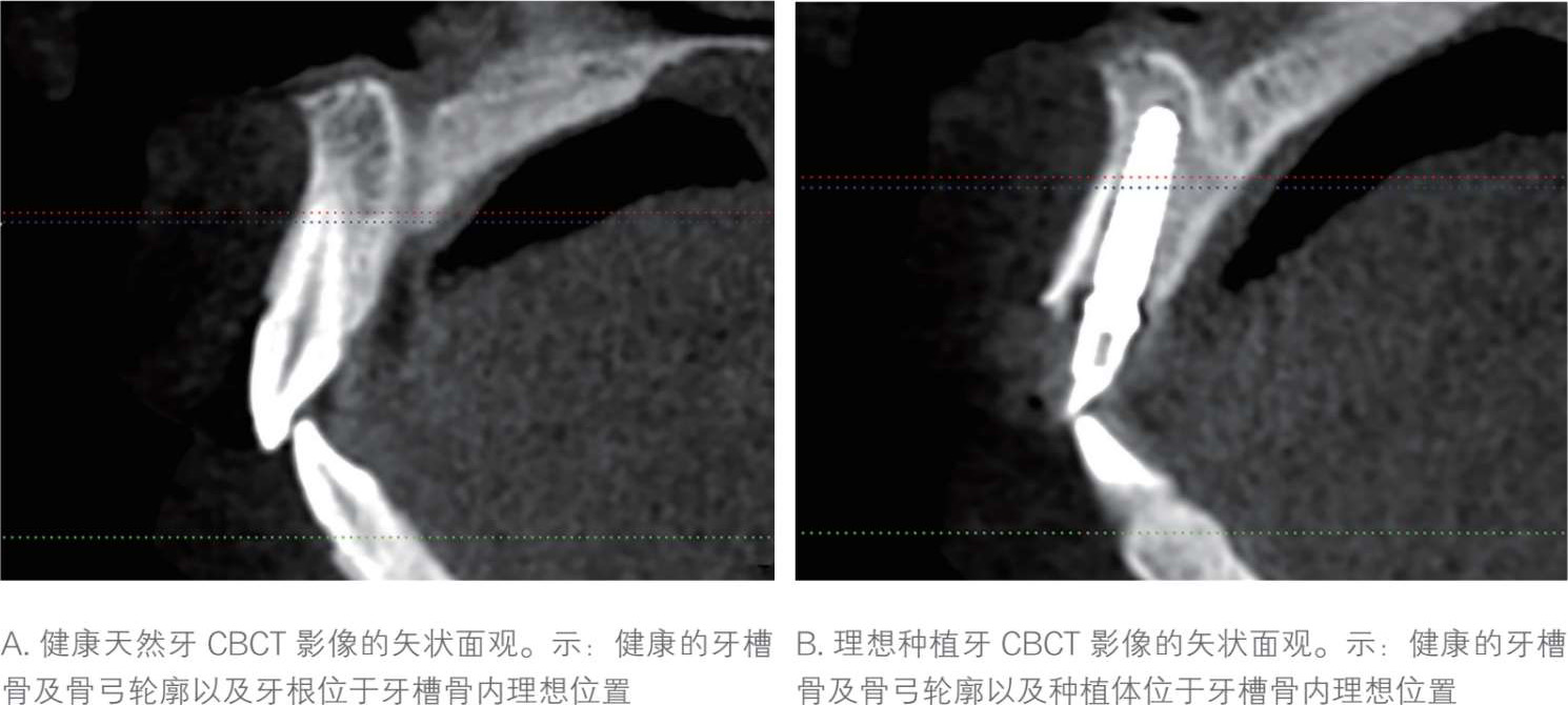 图 1-1-1 健康天然牙和理想种植牙锥形线束CT(cone beam computed tomography,CBCT)影像