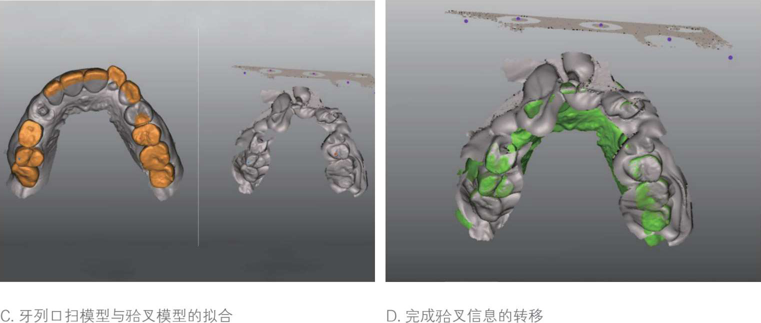 叉信息与上颌模型信息的精准拟合,最终实现患者牙列信息的口内转移(图 2-2-10)。
