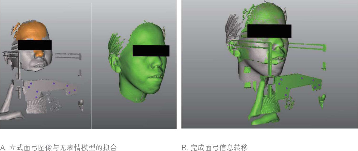 叉携带的面部扫描信息将会融合为一体,即完成静态三维虚拟患者的初步建立(图 2-2-12)。