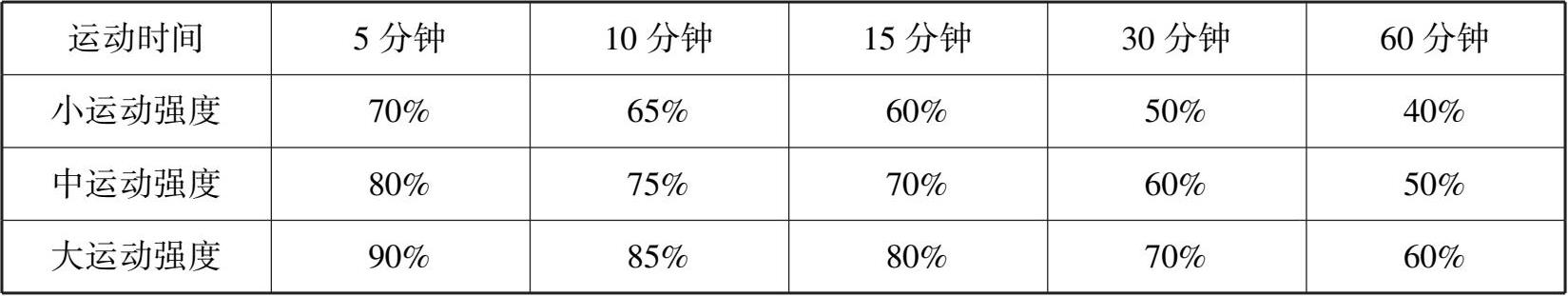 (3)运动持续时间:运动持续时间与运动强度直接相关,强度越大持续时间就越短,强度越小运动持续时间就越长。