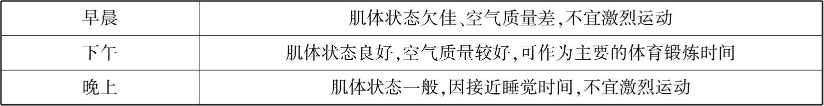 1. 选择合理的体育锻炼时间 ( 表 4-1)